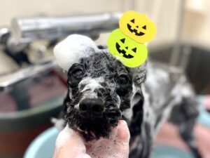 八尾店では、10/1(水)〜 10/31(金)の期間限定で、オプションメニューを追加していただいたワンちゃんにハロウィン仕様のお写真を撮影してプレゼントしております🎁💕
