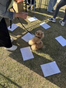 カードの上でわんちゃんがおすわりするとカードがめくれるというルールで、どの子も一生懸命におすわりしようと頑張ってくれて、とっても可愛かったです😊
