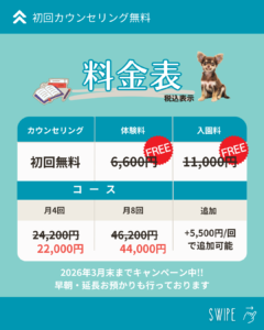 • 【OPEN記念】犬の幼稚園MITCHELMO 体験入園・初回カウンセリング無料キャンペーンのお知らせ